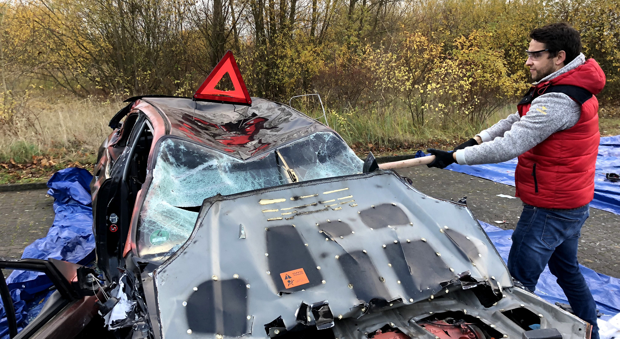 Ganz nach Herzenslust könnt Ihr eine Stunde lang das Auto zerhauen, verunstalten und Dampf ablassen. Der positive Nebeneffekt: Schlag für Schlag lösen sich Ärger und Aggressionen in Luft auf.