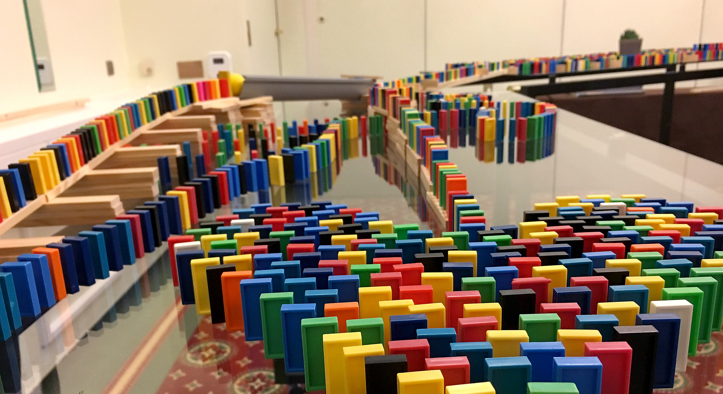 Jeder erinnert sich sicherlich noch an den berühmten Domino-Day – wir tragen dieses einzigartige Event einen Schritt weiter. Bei der Domino-Rallye 2.0 kommen nicht nur Dominosteine zum Einsatz, sondern auch ganz andere Materialien wie z. B. KAPLA®- und Legobausteine. Diese geben Euch die Möglichkeit, Wippen, Pipelines, Viadukte, Logos und unzählige Dinge mehr zu verbauen. Ihr habt so ein viel breiteres Spektrum für die Einbindung Eurer Themen und spornt den Einfallsreichtum und die Fantasie der Teilnehmer an.